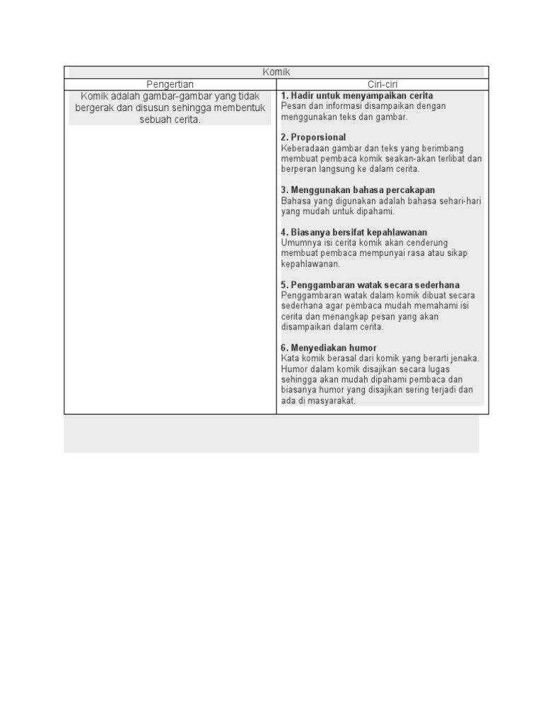 Pengertian Komik Menurut Para Ahli Ciri Jenisnya Ruangbimbel Co Id from ruangbimbel.co.id Padahal, banyak cerita komik untuk orang dewasa. Nah, itulah pembahasan materi ekonomi kelas 11 mengenai apa itu pajak, fungsi, jenis dan manfaatnya. About press copyright contact us creators advertise developers terms privacy policy & safety how youtube works test new features press copyright contact us creators. Pengertian komik menurut para ahli. Posting pada animasi, bahasa, bahasa indonesia, tak berkategori, umum ditag alat digunakan pada seni lukis adalah, apa fungsi gambar dan balon kata pada komik, apa fungsi teks dalam komik, apa fungsi tinta hitam pada komik, apa pengertian komik menurut bahasamu sendiri, apa saja ciri ciri komik, apa yang dimaksud dengan iklan cetak, apa yang. Posisi proporsional dalam pluralisme yang dimaksud di sini bisa ditunjukkan dengan beberapa ciri. Kata madani sendiri diadaptasi dari bahasa arab yang berarti beradab atau dalam bahasa inggris disebut civilized. Branding adalah tentang bagaimana perusahaan mengkomunikasikan ciri khas perusahaan.