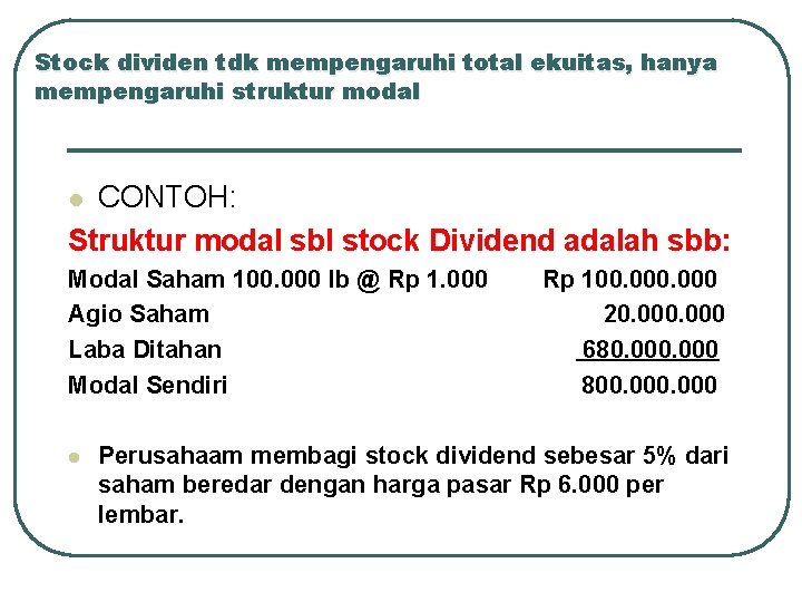 Struktur modal yang efektif mampu menciptakan perusahaan dengan keuangan yang kuat dan stabil. Manajer keuangan memiliki peran sebagai pengambil keputusan pendanaan (kebijakan struktur modal) yang terkait dengan kelangsungan operasi perusahaan. Menurut sawir (2005, hal 10): Hutang yang semakin besar, maka nilai perusahaan akan meningkat. Contoh struktur modal · sebarkan ini: Contoh soal pendekatan laba bersih net income approach. Pengertian struktur modal menurut para ahli. "struktur modal adalah pendanaan permanen yang terdiri dari hutang jangka panjang, saham preferen, dan modal pemegang saham.". Struktur modal merupakan suatu ukuran keuangan antara utang jangka pendek, utang jangka panjang dan modal sendiri dalam melakukan kegiatan perusahaan. Struktur modal merujuk kepada jumlah hutang nilai pasaran hutang nilai pasaran hutang merujuk kepada harga. Saham untuk rencana 1 dan rencana 2 contoh: 3.1.3 studi kasus dalam struktur modal contoh : Struktur modal ialah pendanaan permanen yang terdiri dari utang jangka panjang, saham .